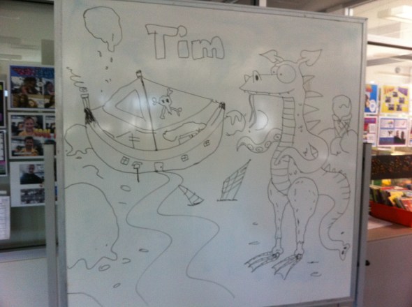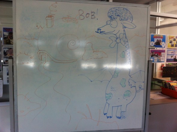 As usual at the end of each talk the kids come up with ideas for characters and I draw them on a white board.