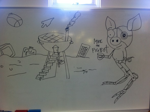 Next we have  Mike the Pigbot. He lives in a BBQ in the world of cyberspace / computers.